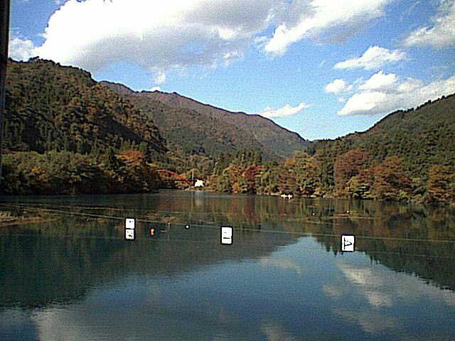 四万湖は水を湛えて、紅葉の中にひっそりと静まり返っていた。