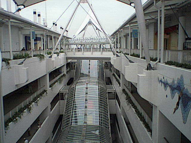 エスカレータは1階から5階まで「海ほたる」の中央部を木更津側から川崎側の方向に直線的に上っていた。