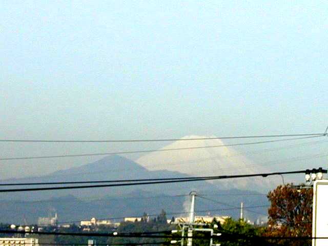 青空を背景に白い富士が美しい姿を見せています。まだまだ雪が5合目付近まで残っています。 撮影:2000.4.25 6:21 カメラ:OLYMPUS CAMEDIA C-2020ZOOM(3倍モード,AUTO)