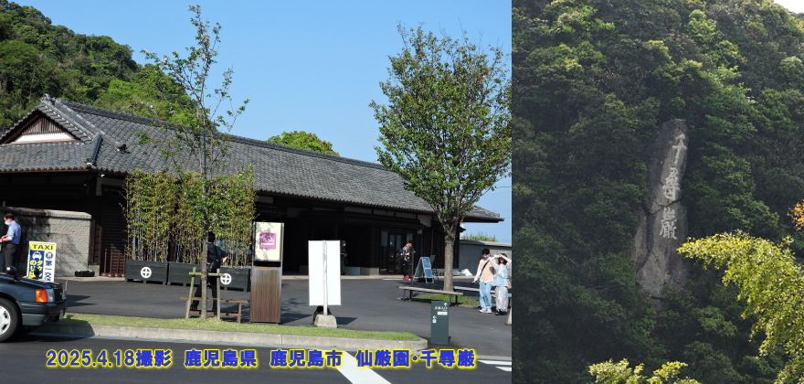 鹿児島県 鹿児島市 仙厳園・千尋巌 千尋巌(せんじんがん」とは、「千尋(せんじん)もの大きさを持つ岩」を意味します。具体的には鹿児島県にある仙巌園の裏山に刻まれた巨大な岩を指します(写真右)。「千尋」は長さの単位である「尋(ひろ)」に由来し、一尋は人が両手を広げた長さに相当する約1.8mで、「千尋」はその千倍の長さを表します。