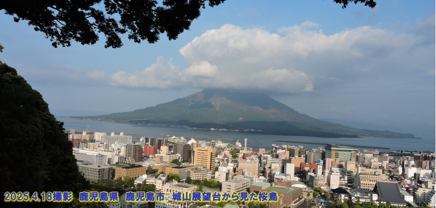 鹿児島県 鹿児島市 城山展望台から見た桜島 市街地の中心部に位置する標高107mの「城山」。 鹿児島市街地と錦江湾、桜島が望める展望台は、絶好の撮影スポットになっています。天気の良い日には遠く霧島や指宿の開聞岳も見え、夜景が美しいことでも有名です。1877年( 明治10年)の西南戦争の最後の激戦地となったため、西郷洞窟や西郷終焉の地など、周辺には西南戦争にまつわる史跡が多く存在し、歴史好き&西郷隆盛ファンは必ず訪れたい場所のひとつです。