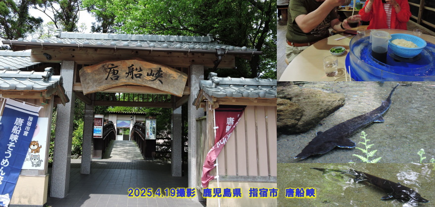 鹿児島県 指宿市 唐船峡 唐船峡(とうせんきょう)は、鹿児島県指宿市開聞十町にある渓谷です。池田湖の南西に位置しています。名の由来は、江戸時代には深くまで入り江が迫っており、唐の船が出入りし舟を着けていたことで名付けられた、唐船ヶ迫という地名からきています。一般に知られるような奇岩、奇勝の景勝地と言うよりは、平地よりも約40m低い陥没した谷間の、杉に囲まれた地に水が湧き出るような規模の渓谷で、その水源を中心に「唐船峡公園」として公園整備されています。