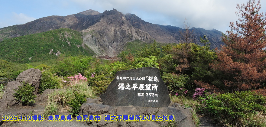 鹿児島県 鹿児島市 湯之平展望所より見た桜島 湯之平展望所(ゆのひらてっぼうしょ)は桜島の北岳4合目、標高373mに位置し、桜島の展望所の中で最も高い所にあり、一般の人が立ち入りできる最高地点となっています。