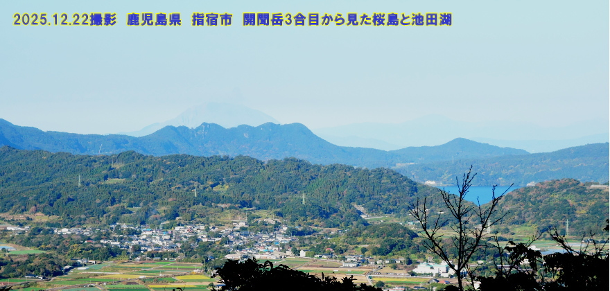 訪れた際は晴れてはいたのですが、残念ながら桜島は中央に見える尾根の背後にうっすらとしか見えていませんでした。一方、池田湖は山間に青く見えていました。