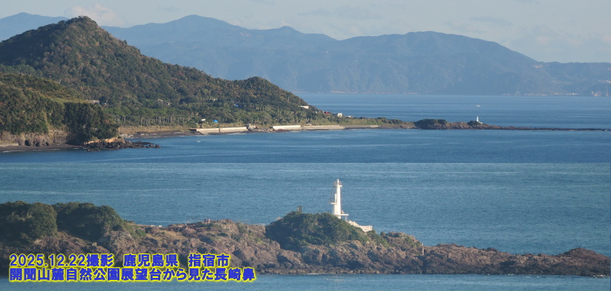 薩摩半島最南端の長崎鼻は、浦島太郎の伝説の地で、美しい開聞岳や屋久島、硫黄島を眺めることができます。また、岬にある「薩摩長崎鼻灯台」(写真下)は2018年(平成30年)に「恋する灯台プロジェクト」で初めて認定され、ハート型のオブジェが設置されている撮影スポットとなっています。