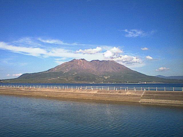 与次郎浜から見える桜島です。山岳部の溶岩や灰に覆われた所と麓部分の緑に覆われた所の色の違いがはっきりと見て取れます。