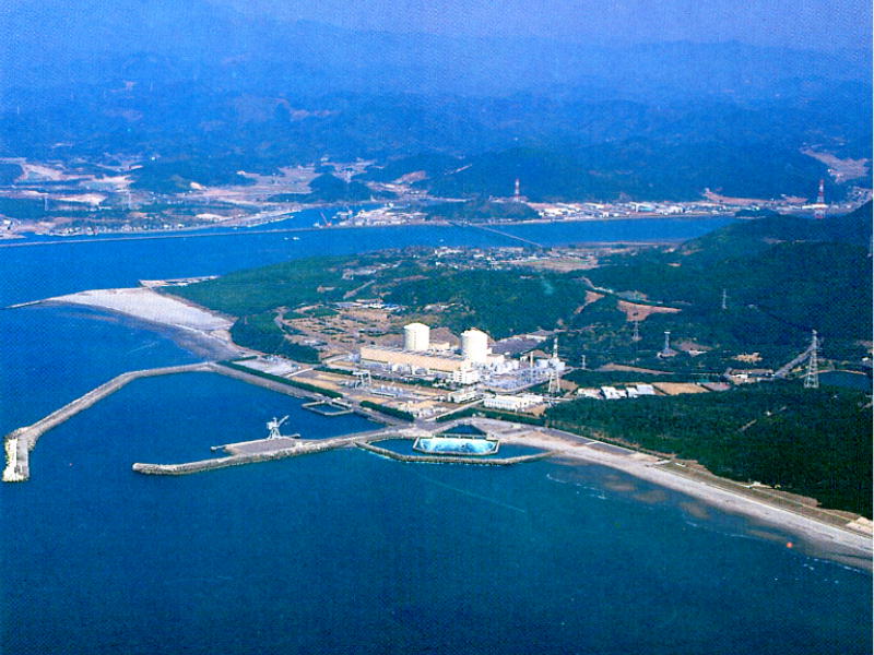 川内原子力発電所の全景。東シナ海に面して施設ができており、周囲は緑に包まれている。背後に見えるのは川内川。