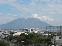 夕方17:00頃-火口上1200m程の噴煙を上げた連続噴火が継続していました。 |