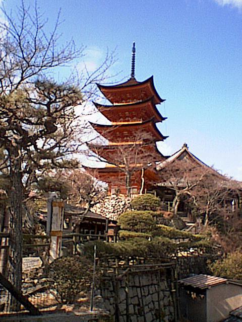 龍ぜんの松越しに五重塔と千畳閣を望む。なかなか風情のある風景を写すことができた。