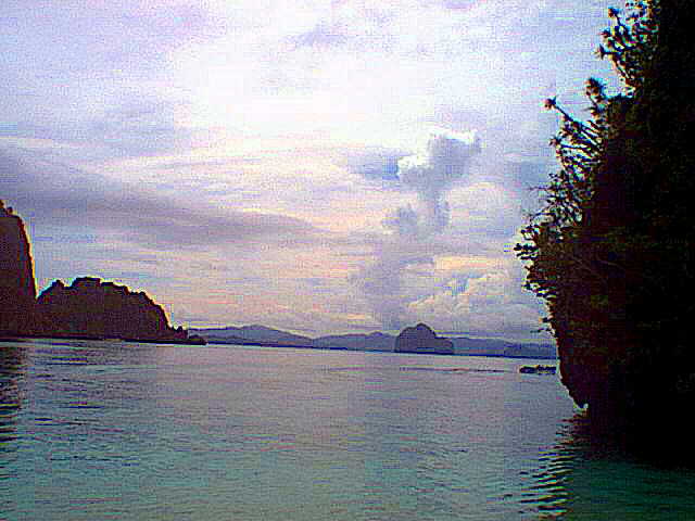 遠くにはパラワン島が見える入り江はビッグラグーンへの入口で、海岸沿いに多くの珊瑚があり多くの魚が泳いでいた。