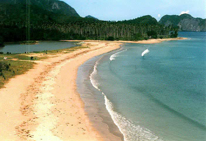 エルニド空港横の海岸線は潮の満ち引きが大きく、引き潮時は奥の波止場にモーターボートすら入れず、この海岸線から、足を水に濡らしながらボートに乗り込む必要がある。