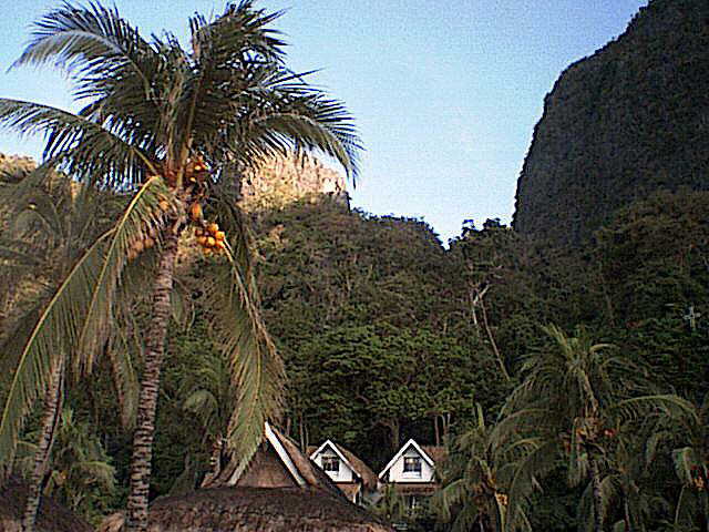 リゾートの背後は黒大理石からなる岩山で、登ることもできないように海岸線に迫っている。