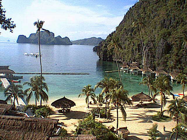 リゾートの背後にあるチャペルより海岸を望む。わずかな砂浜を利用してリゾートが作られていることがよくわかる。