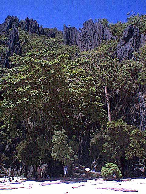 小さなビーチの奥はそびえ立つ岩峰になっている。