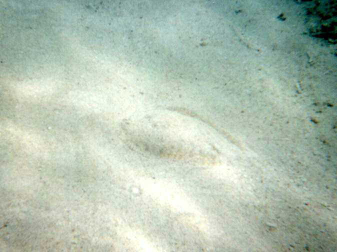 砂の中に埋まっている魚がわかりますか?ちゃんと確かめることは出来ませんでしたが、ヒラメかカレイのどちらかであることは間違いありません。