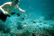 プライベートビーチとして訪れたバグルガバン島はシュノーケリングのポイントでもあり、数々の珊瑚や魚を楽しむことができた。