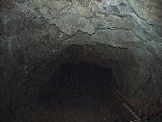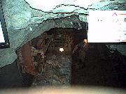 鉱脈に沿って斜めに掘られた坑道。傾斜角35度、長さは250mほどで人車やスキップが上り下りしています。