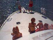 | クルーザーのキャプテン | クルーザーの前方では | みんな日光浴 |