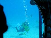 グランドケイマンのアクティビティとして第一に上げられるのが潜水艦アトランティス号での水中散歩、海底30メートル以上の深さまで潜り、海中の様子を散策できる。約1時間の散策中にカリブ海の魚やサンゴを満喫できる。撮影した写真は残念ながら荒涼不足でもう一つという感じだが、ダイビング以外でこのような光景を楽しめるので一見の価値はある。船内ではクルーのガイドもあり英語が理解できれば、さらに楽しむこともできる。語学力のなさが悔やまれる時間でもあった。