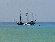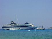 | 沖に停泊した豪華客船 | 海賊船のような船も | 沖に停泊した豪華客船 |