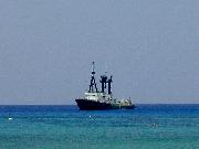 | 沖に停泊した船 | 豪華客船の客は沖からボートで島を目指す | |