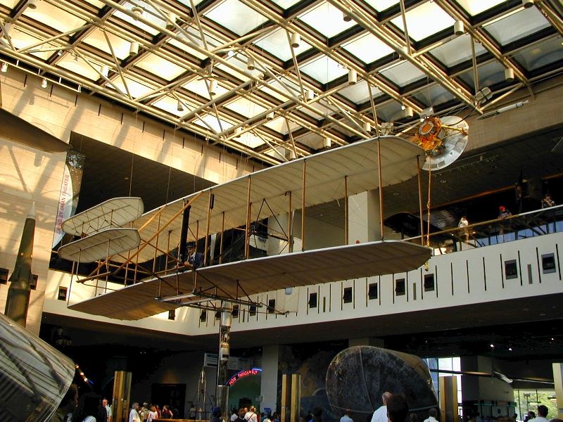 国立航空博物館正面入り口に吊されたライト兄弟1903・フライヤー。
