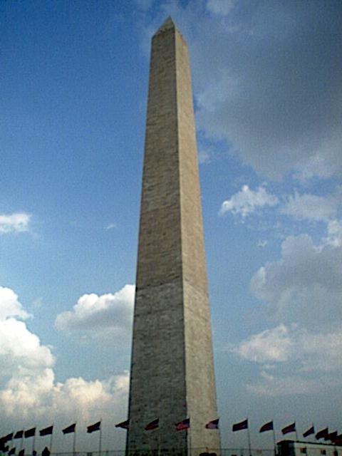 ワシントン記念塔。塔の1/3の所から色が違っているのがわかる。残念ながら改装中のため塔に上って周りを展望することはできなかった。