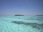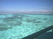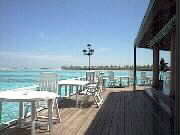 サンライズレストランは水上コテージの突端にあり、遠浅の海を見渡す形になっている。北側には干潮時には歩いて渡れるという島が緑をたたえて浮かんでいる。とにかく遠浅の海が光を浴びて眩しく輝いている。
