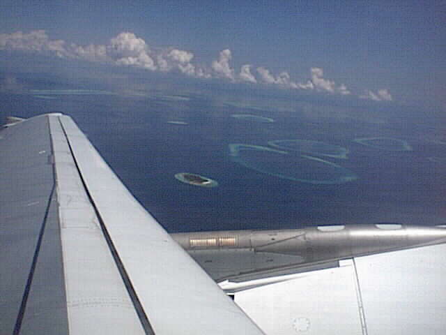 席が翼の上のため、海上を見渡せるとはいかなかったが、遠くの環礁や島をカメラに納めることができた。