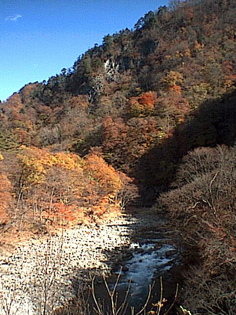 405号線沿いの風景。谷川沿いの紅葉は、また違った風情を見せていた。