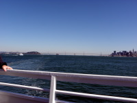 予約した時間のアルカトラズクルーズのフェリーで出発すると、すぐにアルカトラズ島が視界に入るだけでなく、ゴールデンゲートブリッジもその勇壮を見せてくれます。また、オークランドとの間に架かるベイブリッジも見ることができます。